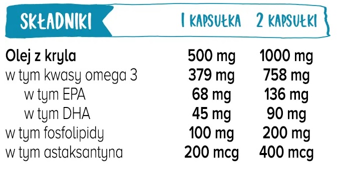 • Czyste i zrównoważone źródło: Kryl, z którego pozyskiwany jest olej, pochodzi z czystych wód Oceanu Antarktycznego. Połów jest prowadzony w sposób zrównoważony i kontrolowany, co potwierdza m.in. certyfikat MSC (Marine Stewardship Council).