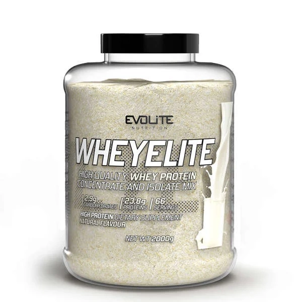 - Evolite WheyElite jest połączeniem koncentratu białka serwatkowego oraz izolatu, bez zbędnych dodatków. Odżywka ta charakteryzuje się bardzo dobrą przyswajalnością, aminogramem, świetnym smakiem jak i znakomitą rozpuszczalnością.