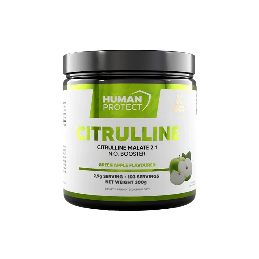 - Human Protect Citrulline to suplement diety zawierający czystą formę cytruliny. Cytrulina, będąc prekursorem tlenku azotu (NO), pomaga rozszerzać naczynia krwionośne, co zwiększa przepływ krwi, dostarczając więcej tlenu i składników odżywczych do mięśni.