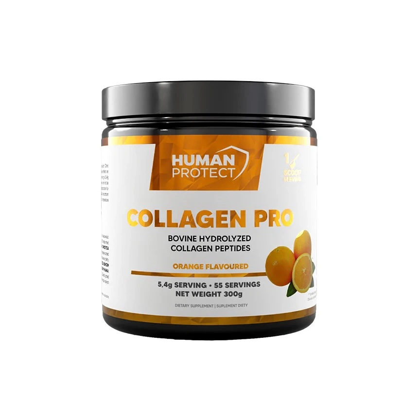 - Human Protect Collagen Pro dostarcza kolagen, który jest jednym z najważniejszych białek w organizmie człowieka, stanowiącym główny składnik tkanki łącznej. Jego właściwości sprawiają, że jest niezbędny dla utrzymania zdrowia skóry, stawów i kości.
