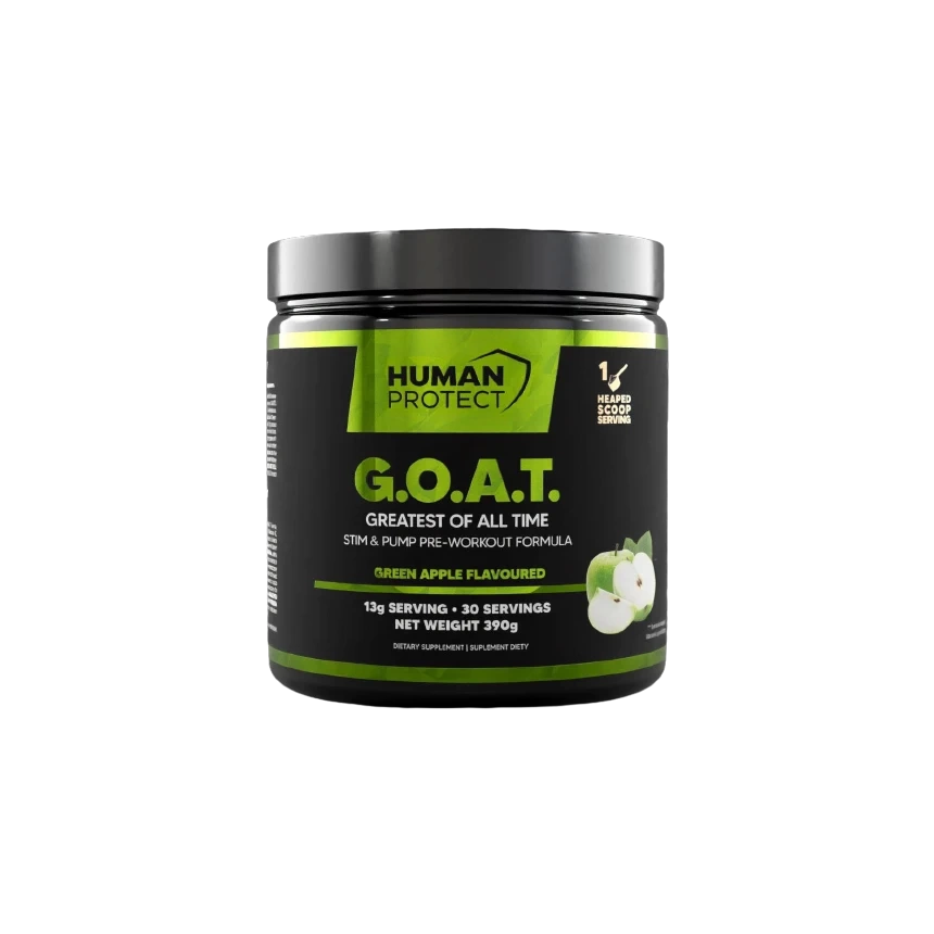 - Human Protect G.O.A.T. 390g to kompleksowa przedtreningówka stworzona, by zapewnić maksymalną wydajność i wytrzymałość podczas intensywnych treningów. Zawiera aż 12 składników aktywnych!