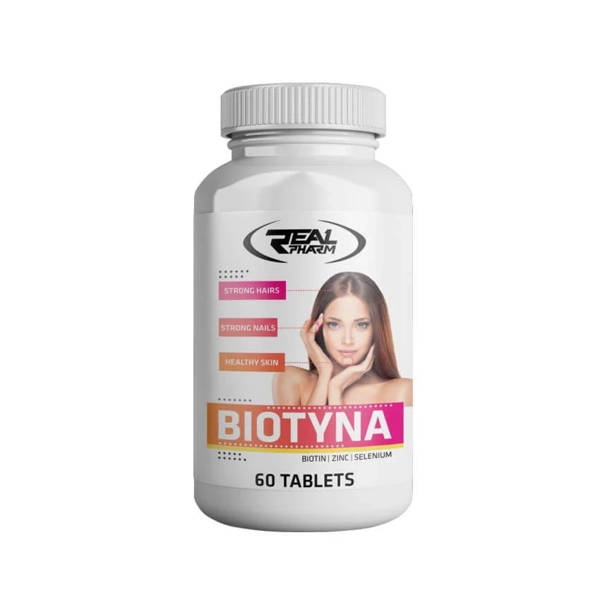 - Real Pharm Biotyna to idealne wsparcie dla osób pragnących poprawić kondycję swoich włosów, skóry i paznokci od wewnątrz, a także wspomaga prawidłowy metabolizm energetyczny.