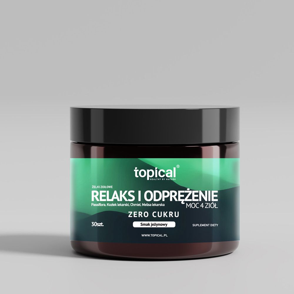 - Nazwa Produktu: Topical Żelki ziołowe relaks i odprężenie. moc 4 ziół 30 szt.